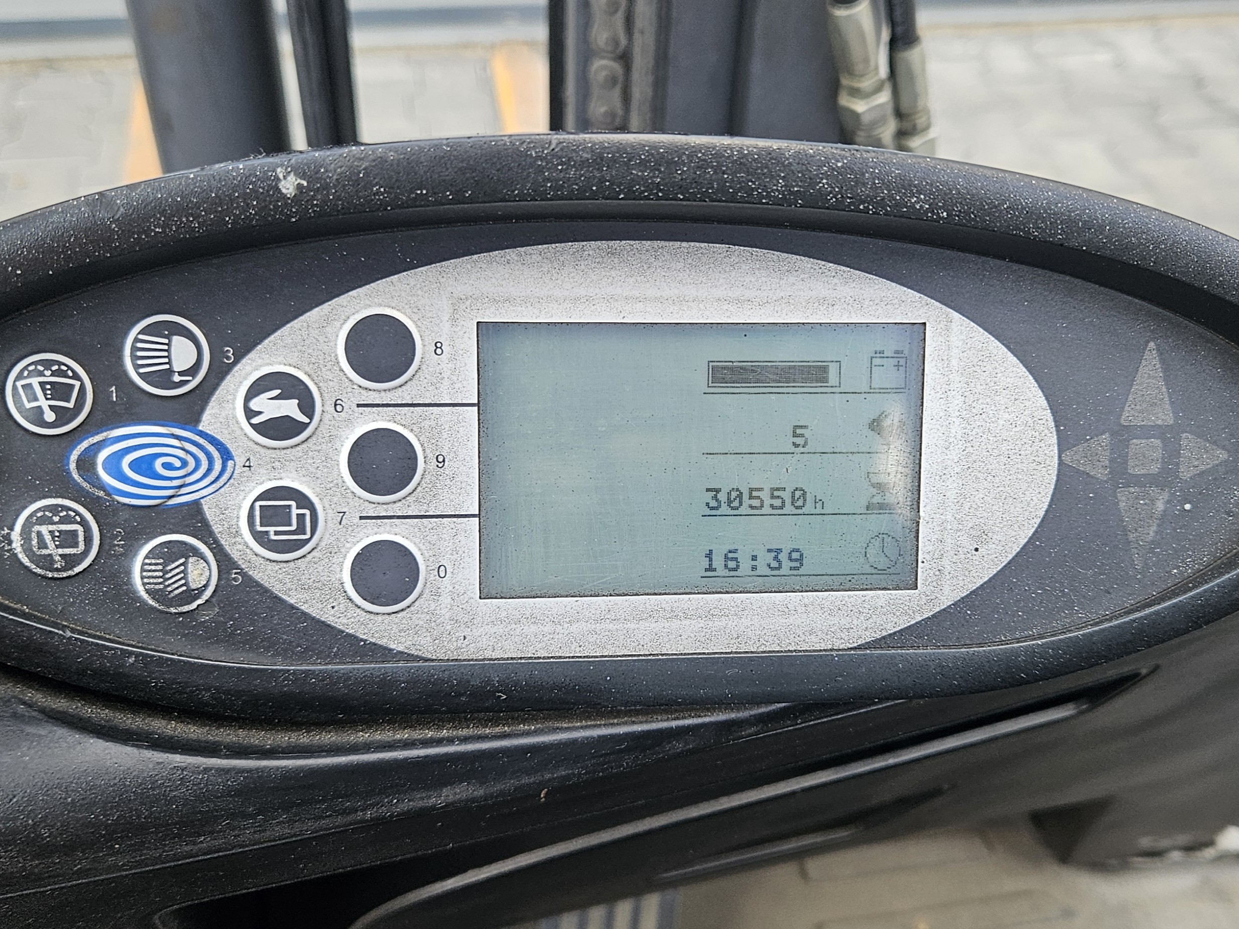 Wózek ma dwie lampy przednie, lampę tylną, lampę cofania Blue oraz lampę ostrzegawczą (kogut).