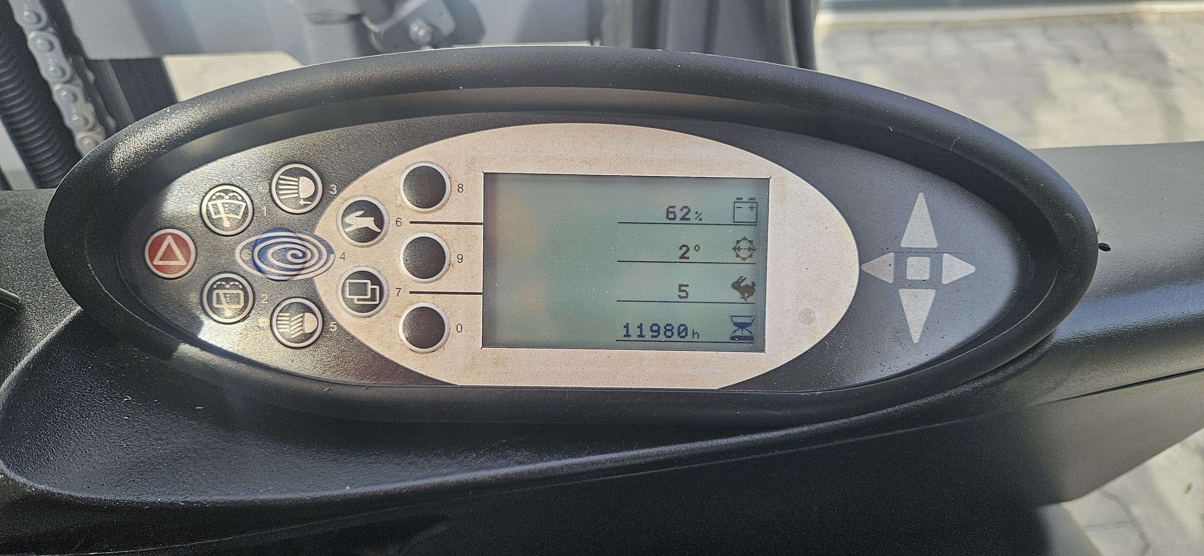 Wózek ma dwie lampy przednie, lampę tylną, lampy cofania Blue oraz lampę ostrzegawczą (kogut).