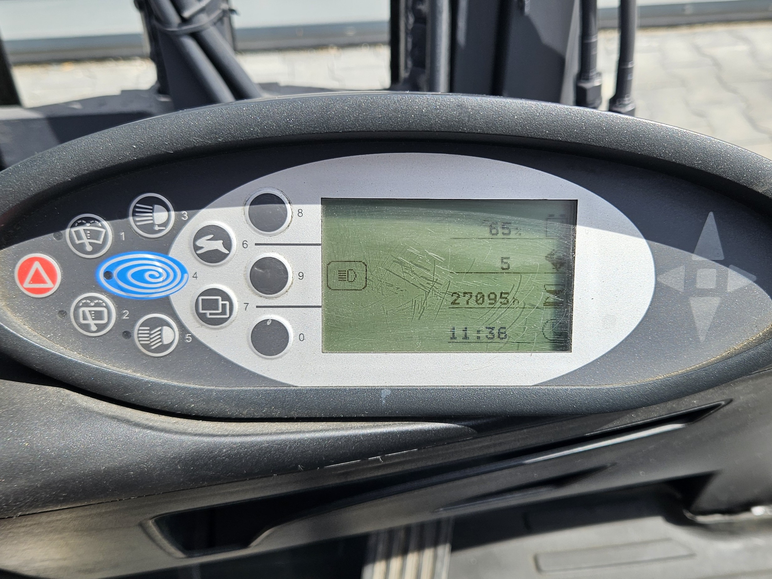 Wózek ma dwie lampy przednie, lampę cofania Blue oraz lampę ostrzegawczą (kogut).