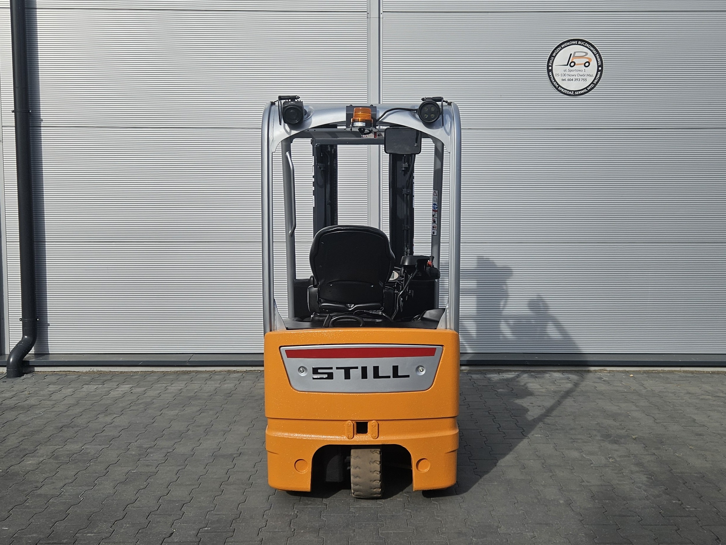 Wózek ma dwie lampy przednie, lampę tylną, lampy cofania Blue oraz lampę ostrzegawczą (kogut).