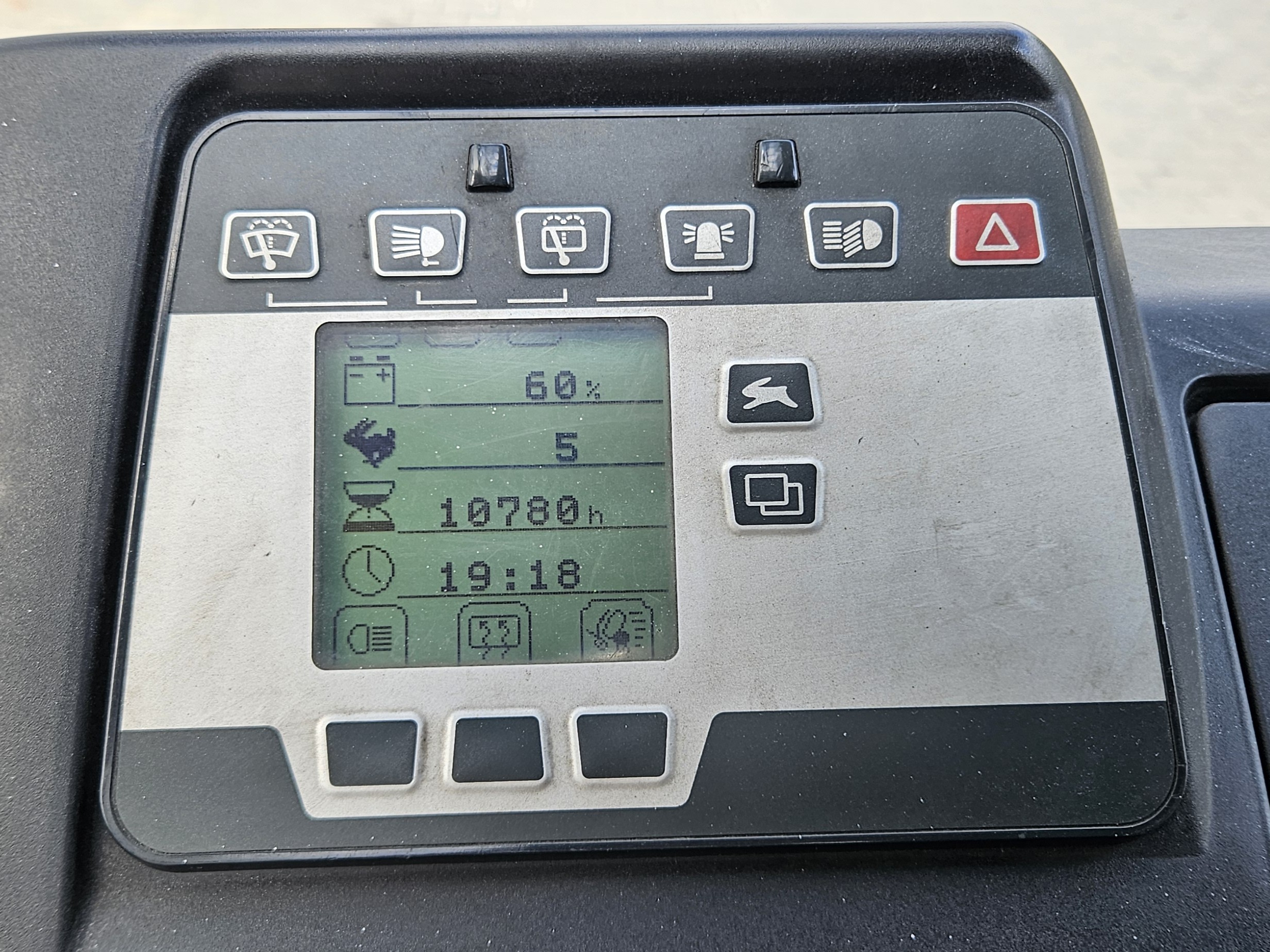 Wózek ma dwie lampy przednie, dwie lampy tylne oraz lampę ostrzegawczą (kogut).